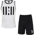 Pigiama da uomo F.C. Juventus composto da canotta a spalla larga con scollo tondo, stampa centrale in contrasto di colore e pantalone corto tinta unita con elastico in vita.