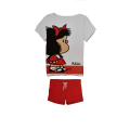 Il completo estivo bambina Mafalda è un prodotto pensato per le bambine che amano il colore e la fantasia. La T-shirt bianca con stampa e i pantaloncini rossi con coulisse in vita creano un'immagine unica e divertente. E' un modo per loro di esprimersi e di giocare con la moda, scegliendo un abbigliamento che rispecchia la loro personalità e il loro stile. Il completo è realizzato in 100% cotone, garantendo comfort e freschezza durante le giornate estive. La composizione in cotone garantisce un lavaggio facile e un aspetto fresco anche dopo più lavaggi.