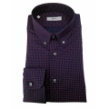 Camicia uomo con collo button down, in 100% cotone. Tinta unita blu con fantasia rombi rossi.
