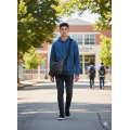 Realizzata con tracolla regolabile, comoda chiusura con elastico e doppio scomparto interno. Ideale per lo studio e l'attività scolastica.