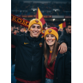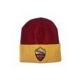 Cappello zuccotto Roma Calcio a tinta unita rossa con risvolto giallo con logo.