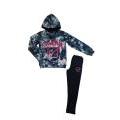 Felpa chiusa con cappuccio e pantalone elasticizzato senza elastico alle caviglie.