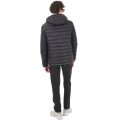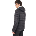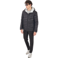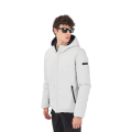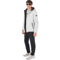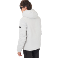 Cappuccio con elastico, chiusura full zip con patta di copertura, tasche laterali e patch sul braccio.