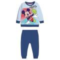 Casacca girocollo con bottoncini laterali e pantalone con elastico alle caviglie.