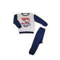 Casacca girocollo con bottoncini laterali e pantalone elasticizzato con polsini.
