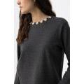 Caldo maglioncino moda con girocollo in perline.