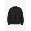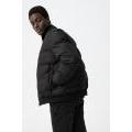 Giacca trapuntata nera, vestibilità regolare, con cerniera frontale e polsini elastici.