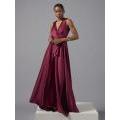 Abito lungo drappeggio sul fianco bordeaux Rinascimento