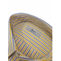 Collo alla francese. Tinta gialla con le righe bianche e blu.