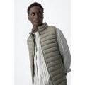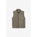 Gilet verde, vestibilità regolare, con leggera imbottitura, chiusura frontale e collo alto, stile casual.